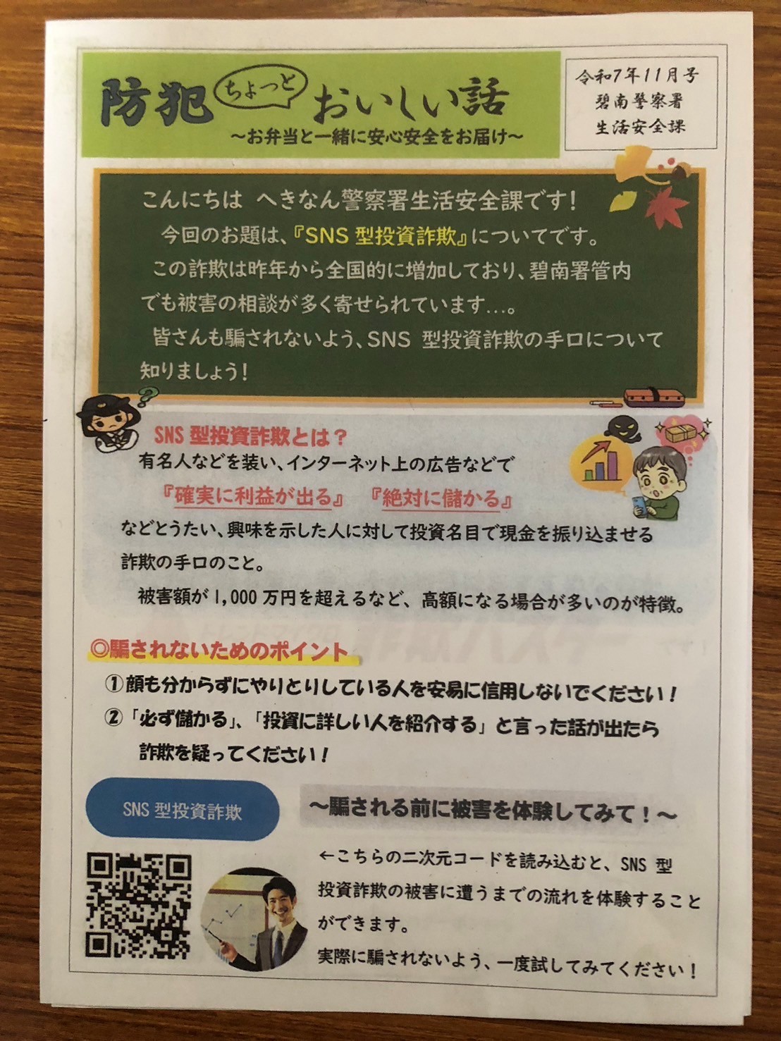 本取り組みは、高齢者の皆さまを対象としたSNS型投資詐欺の被害防止を目的に実施されたものです。