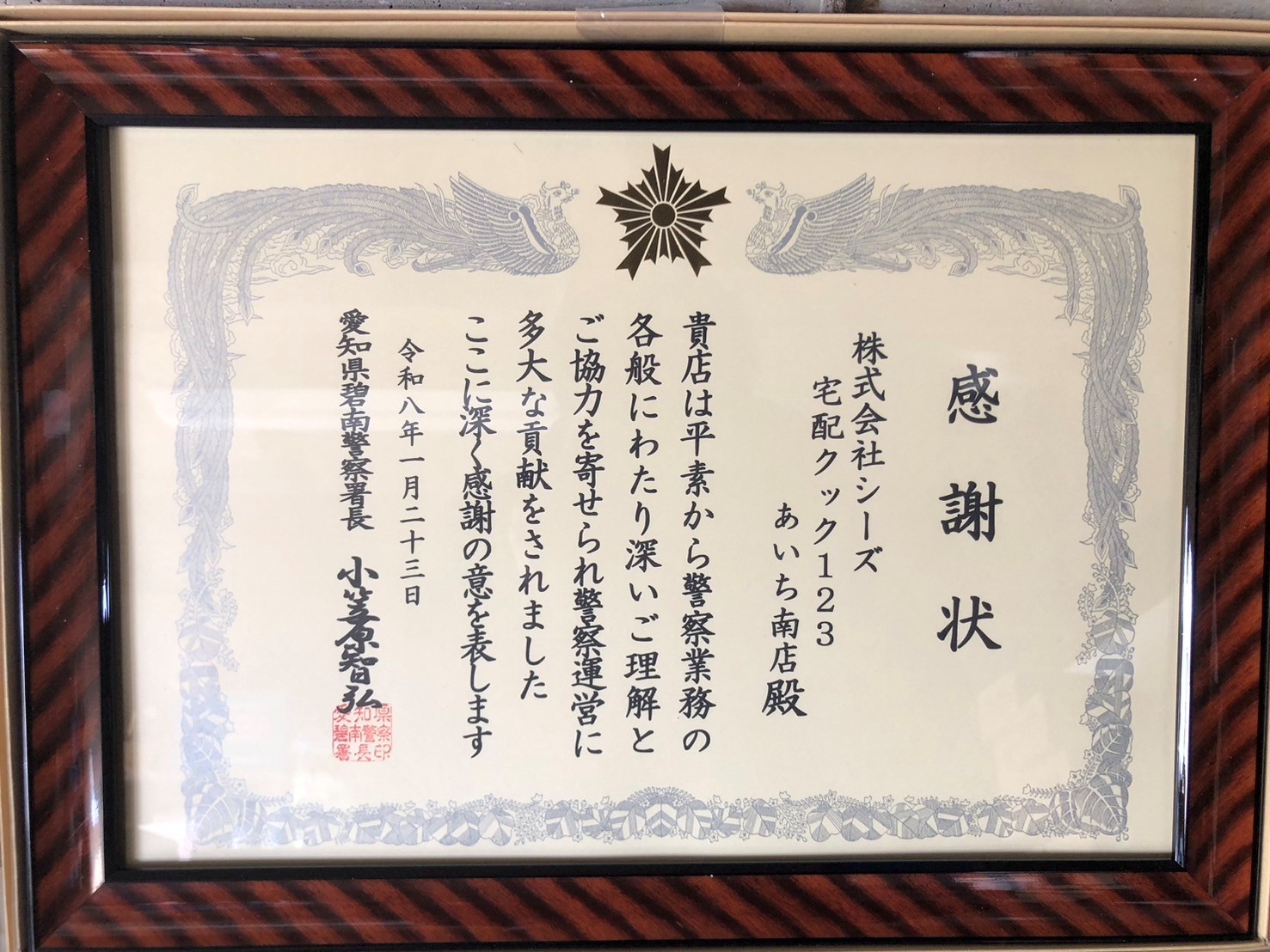 あいち南店が碧南警察署より感謝状をいただきました